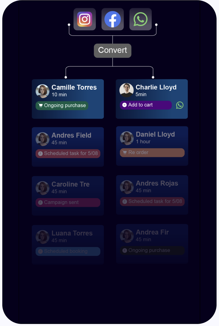 Unifica tu inbox, CRM y colaboración de equipo para dar a cada conversación la estructura necesaria para cerrar ventas.